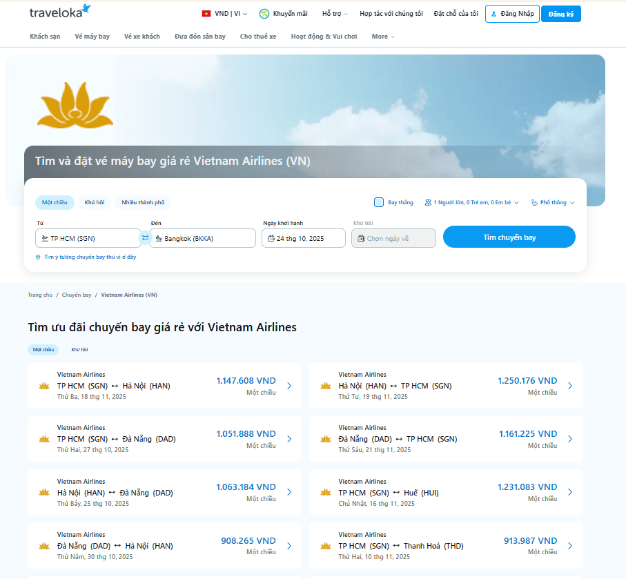 Hướng dẫn chi tiết các bước đặt vé Vietnam Airlines trên Traveloka